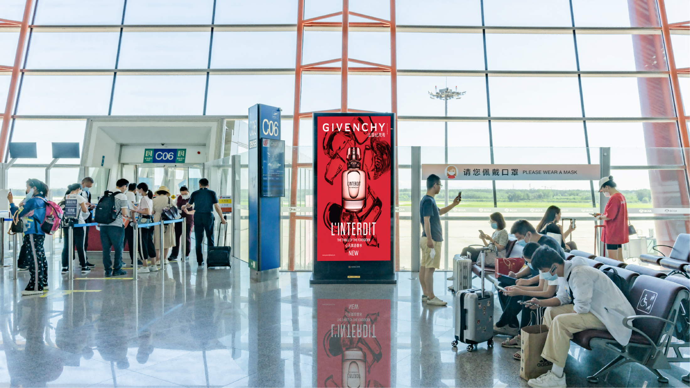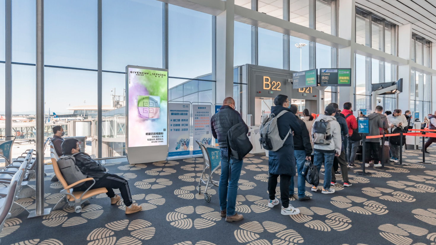 位置优势:LED灯箱分布于安检口、值机区、候机厅、行李提取处、廊桥等核心区域(如首都机场T3国内国际到达区LED广告月费约49.9万元/组,每日滚动738次;大兴机场三层安检前刷屏广告分辨率达2160×3840,覆盖全部国内出发旅客),形成“必经之路”的强制曝光,广告到达率高达88.3%,且旅客停留时间长(国际航班平均停留2-4小时),信息传递更充分。
